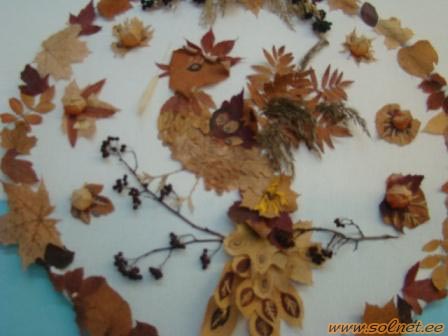 Используемые материалы: веточки, листья, ягоды, цветы.